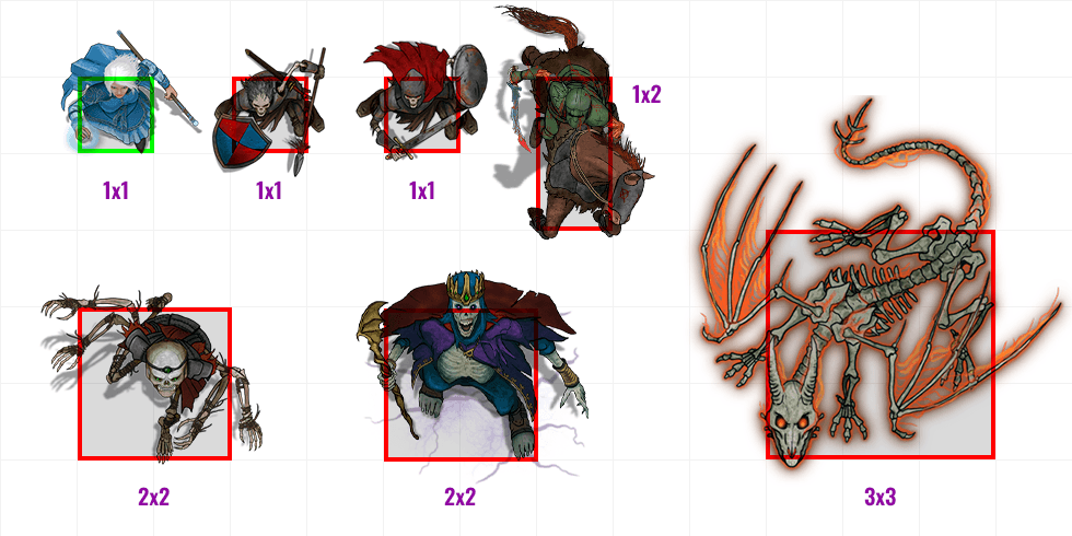 Criaturas que ocupem mais de 1 Quadrado (Grid), ou seja, de Tamanho Grande ou Superior, precisam ter a quantidade proporcional de atacantes para ser considerada totalmente flanqueada. Lembre-se, com pelo menos 8 aliados (4 posições de flanqueamento) você já acerta automaticamente, só não aplica DNR neste caso.